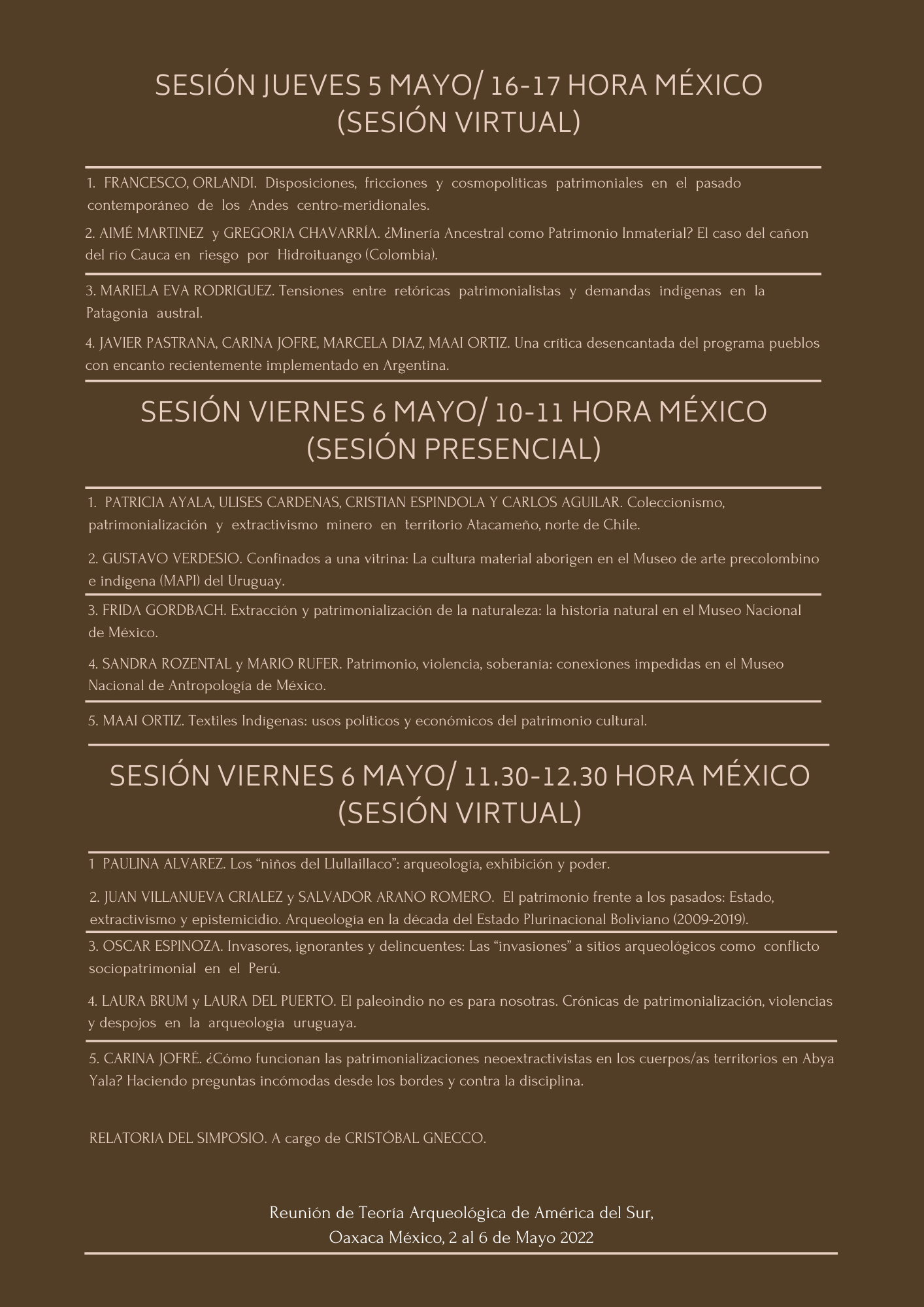 Programa del Simposio PATRIMONIALIZACIONES, EXTRACTIVISMOS Y VIOLENCIAS